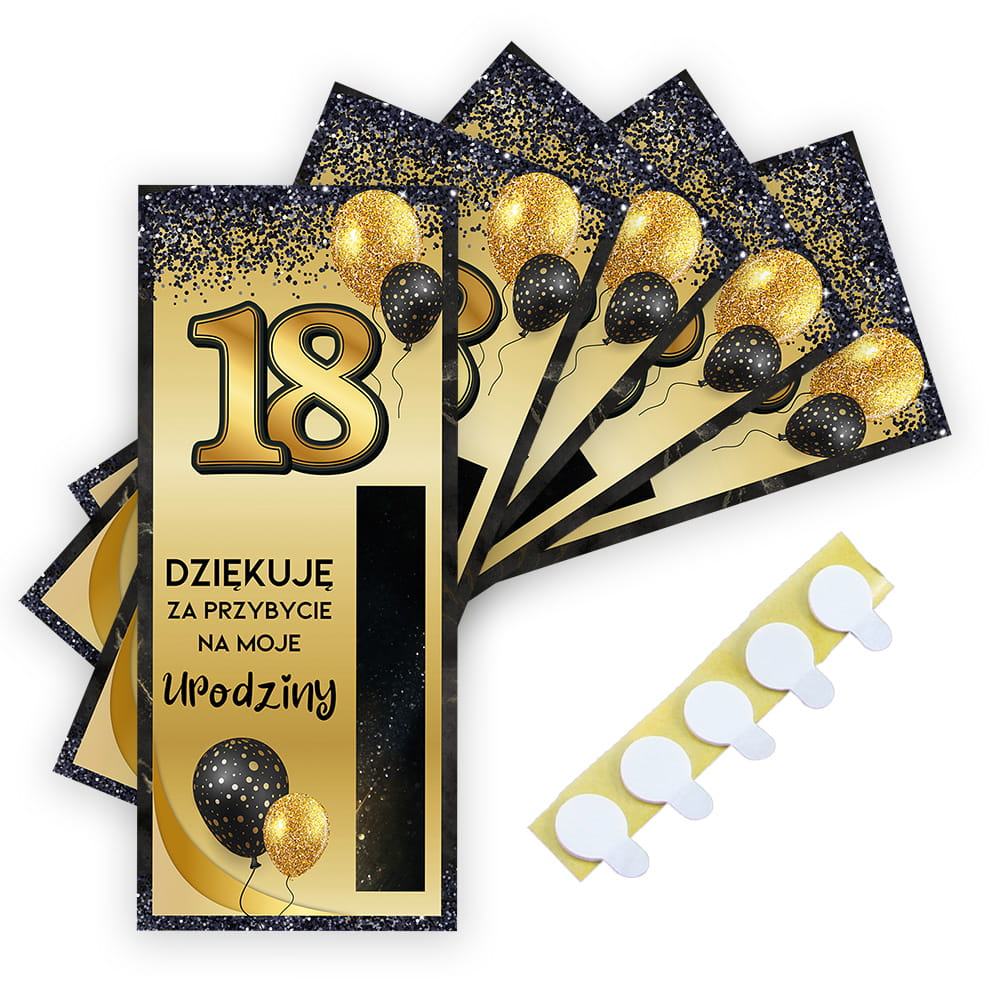 Podziękowania dla gości Merci na 18 Urodziny Czarno Złote - 5 sztuk (s)