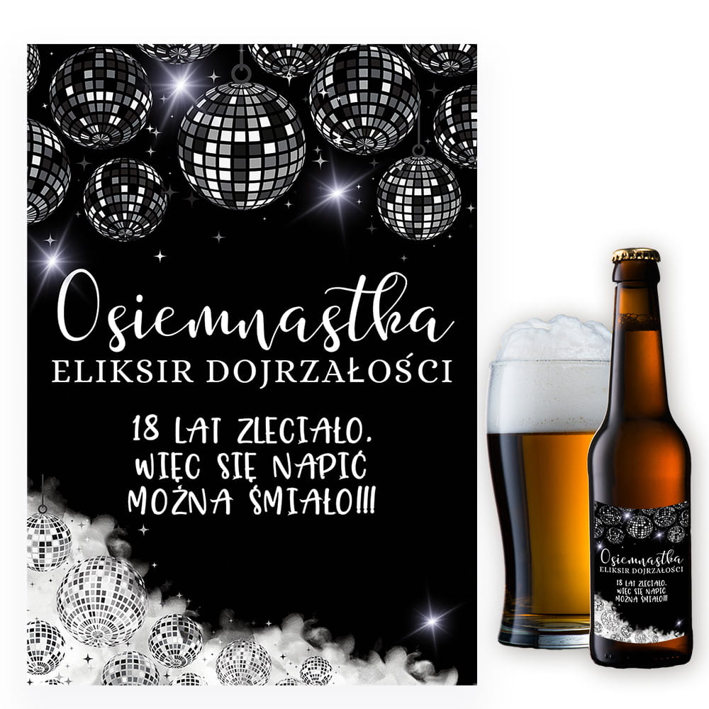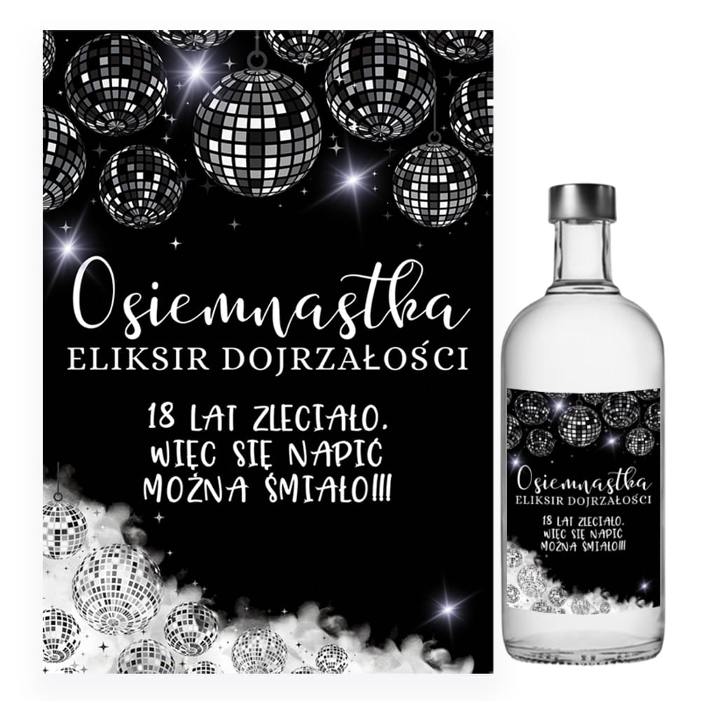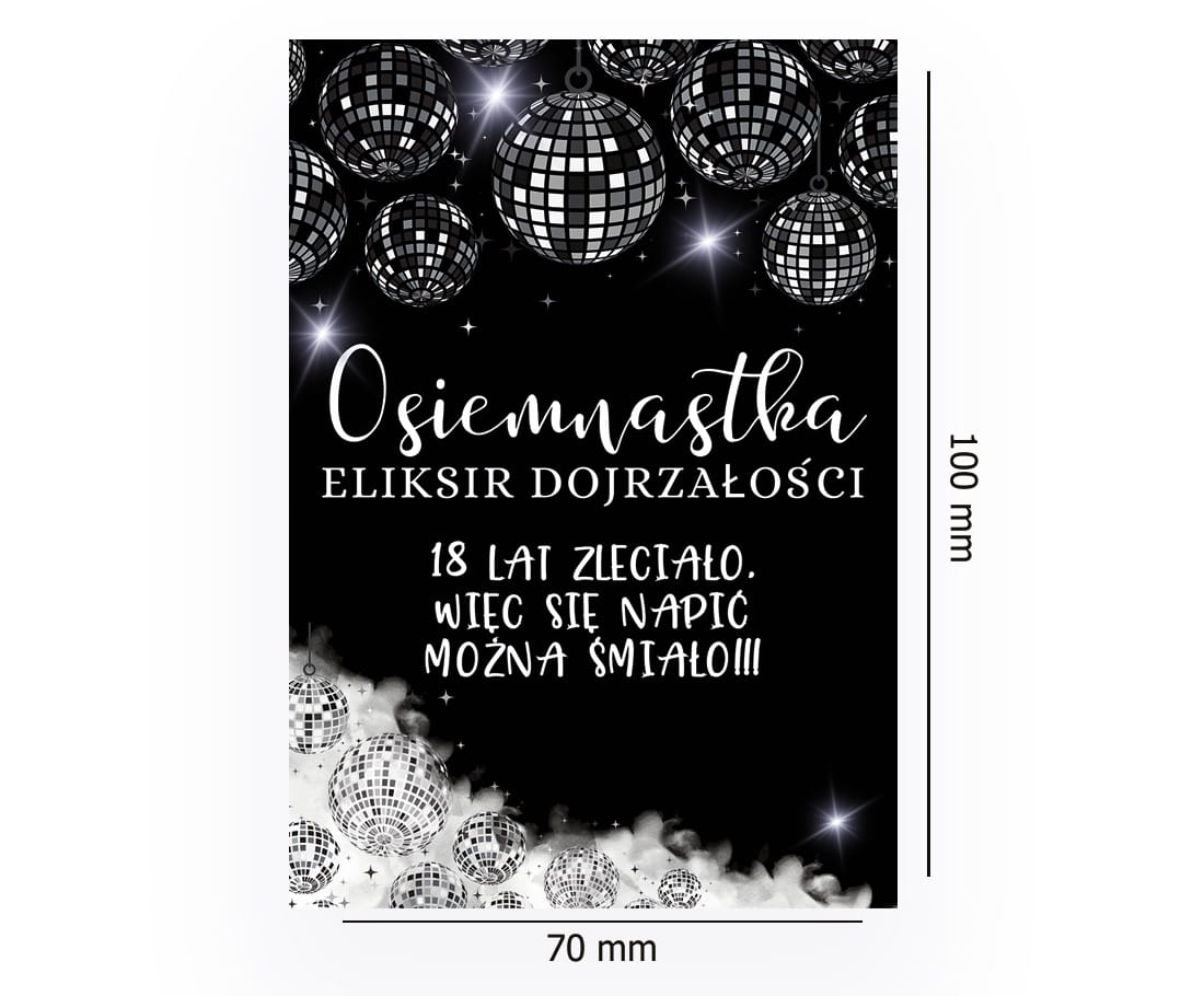 Naklejki na Butelki na 18 Urodziny Czerń i Biel - 10 sztuk (s)